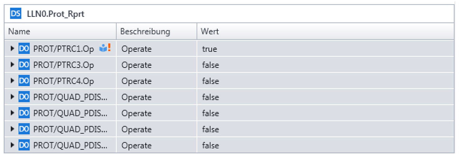 Diese Information wird mit einem Dienst der IEC 61850, dem sogenannten Report zur Leittechnik übertragen. Im Sinne der IEC 61850 ist die Leittechnik der Client der vom IED (Server) die Informationen bekommt. Nehmen wir also die Auslösung wieder zurück und stellen fest, dass die geänderte Information zur Leittechnik übertragen wurde.